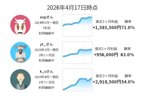 リアルタイム成績!ロボトレーダーを実際に利用している3名のユーザーさんの成績を公開。